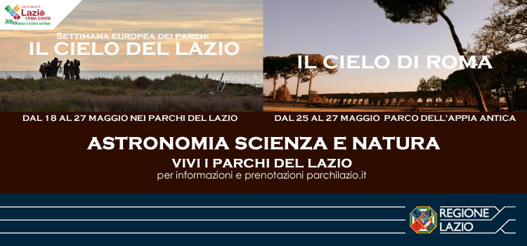 In concomitanza con la “Settimana Europea dei Parchi” sarà un’immersione totale nella scienza e nella natura dei Parchi della Regione Lazio, dove ci saranno una serie di attività legate a percorsi in natura chiamati “Il cielo del Lazio”. Il programma è focalizzato sui temi dell’osservazione del cielo notturno in tutte le sue sfumature, utilizzando anche diversi osservatori astronomici (professionali e non) che si trovano nelle Aree Protette del Lazio e in particolare a nei Parchi di RomaNatura, nel Parco dei Castelli Romani e nel Parco dell’Appia Antica, dove la manifestazione si concluderà nel fine settimana dal 25 al 27 maggio (via Appia Antica, 42 – Roma).