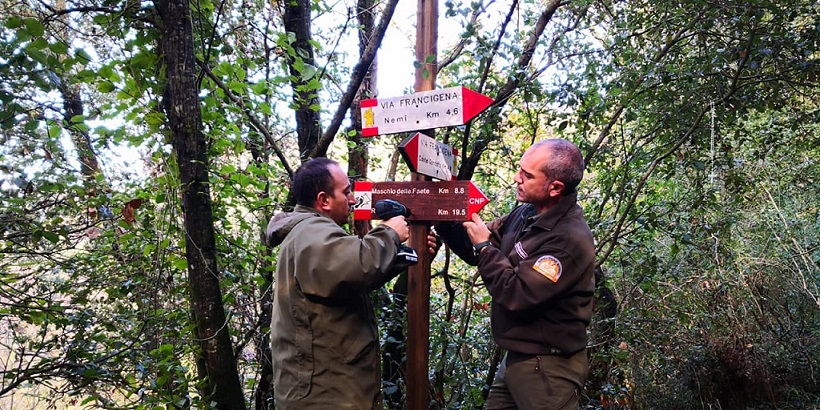 I Guardiaparco sono impegnanti in questi giorni sul tratto del CNP (Cammino Naturale dei Parchi), che passa all’interno del Parco dei Castelli Romani, con l’installazione della segnaletica verticale.