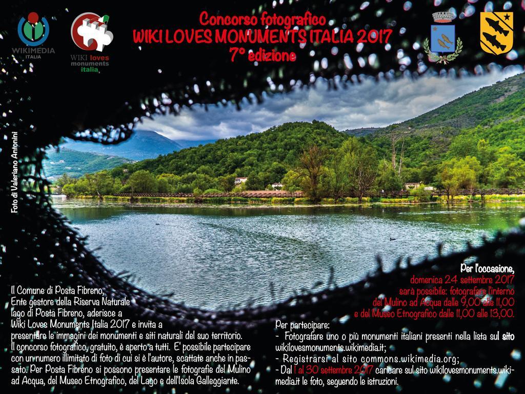 Anche il Comune di Posta Fibreno, Ente gestore della Riserva naturale lago di Posta Fibreno, aderisce alla VI edizione del concorso fotografico “Wiki Loves Monuments Italia 2017”, promosso e coordinato da Wikimedia Italia - Associazione per la diffusione della conoscenza libera.