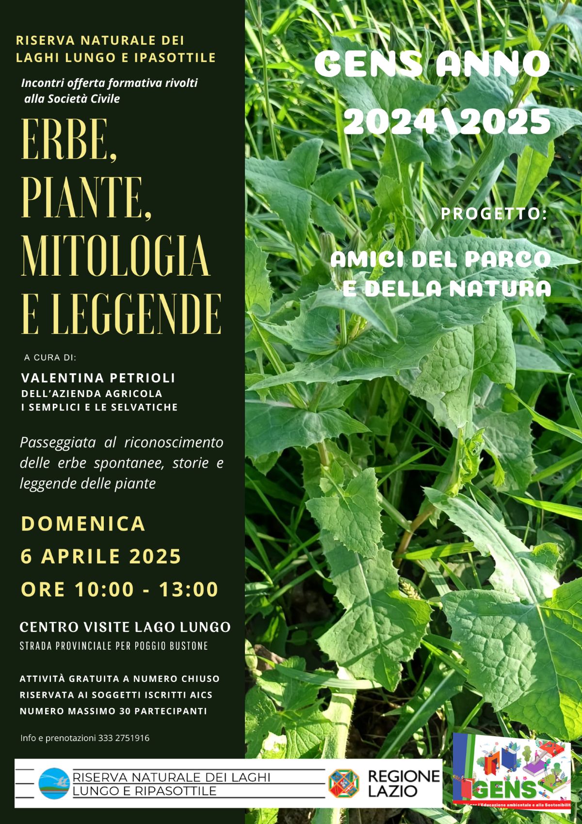 La Riserva Naturale dei Laghi Lungo e Ripasottile, domenica 6 aprile 2025, dalle ore 10.00 alle ore 13.00, con appuntamento presso il Centro Visite del Lago Lungo, organizza una mattinata dedicata alle erbe e alle piante.