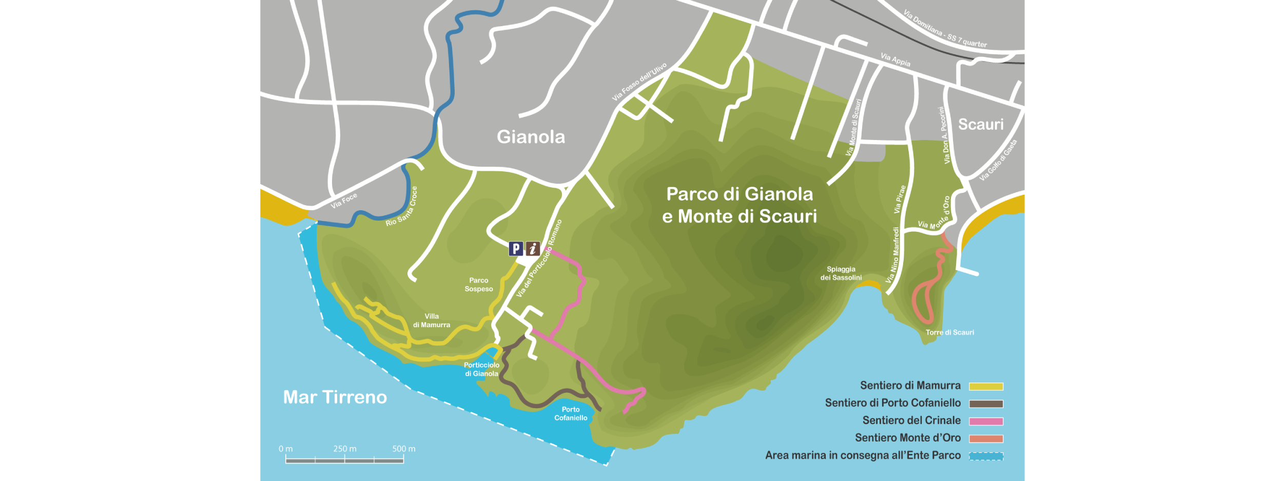 An enchanting corner of lower Lazio which extends over 292 hectares between the territories of Formia and Minturno. The mild Mediterranean climate invites pleasant visits at any time of the year. Here, the Mediterranean scrub, in some areas, transforms into magnificent woods, among which the evocative cork grove of Monte di Scauri stands out. The vegetation of the cliffs is an extraordinary example of adaptation to nature of plants used to living near the sea, defying strong winds and high salinity. Despite the strong surrounding anthropization, the fauna is rich and varied, with terrestrial mammals and numerous bird species that exploit the strategic position of the Gianola promontory on the migratory routes between Europe and Africa. The seabed, which alternates rocky and sandy stretches, is home to rich and diverse animal and plant populations. Gianola also represents an important archaeological site, with the remains of an extensive villa from the late Republican era, built around 50 BC. presumably by Mamurra, a knight friend of Julius Caesar, whose use continued into the late period with uses different from the initial one. A church, the sixteenth-century coastal watchtowers (among which the Scauri one is still well maintained) and the “Porticciolo di Gianola” (locally called “Porticciolo Romano”) date back to the Middle Ages, built in the 1930s on the remains of a fishpond of the aforementioned villa.