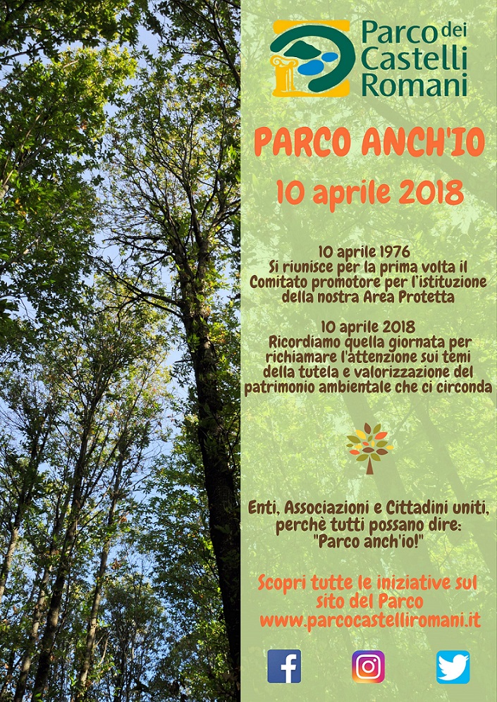 La data prescelta e il 10 aprile 2018, lo stesso giorno in cui, nel 1976, un gruppo di cittadini e rappresentanti di Associazioni del territorio si riunì per dare vita al Comitato promotore del Parco, culminò con l’istituzione, attraverso la Legge regionale n. 2 del 13 gennaio 1984, del Parco suburbano dei Castelli Romani.