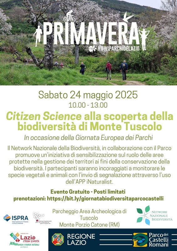 Sabato 24 maggio, in occasione della Giornata Europea dei Parchi, istituita nel 1999 dalla Federazione Europarc per celebrare le aree protette in tutta Europa, si svolgerà sul Monte Tuscolo, l’iniziativa di Citizen science promossa dal Network Nazionale della Biodiversità in collaborazione con l’Ente Parco Regionale dei Castelli Romani.
