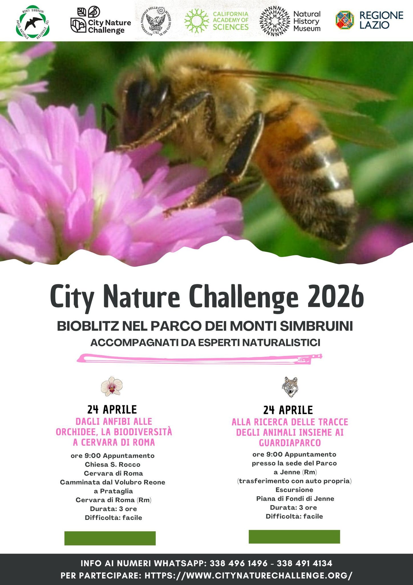 Torna il City Nature Challenge 2026, l'iniziativa dedicata alla biodiversità urbana, con due appuntamenti speciali nel Parco Monti Simbruini accompagnati da esperti naturalistici. Un'occasione unica per osservare da vicino specie animali e vegetali, conoscere il territorio e contribuire alla tutela della natura.