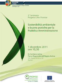 Il giorno 01 dicembre p.v. alle ore 10.30 presso l'ex Cartiera Latina al Parco dell'Appia Antica, Via Appia Antica, 42 Roma si terrà il III Seminario informativo del Progetto Life + Promise - Sostenibilità ambientale e buone pratiche per la Pubblica Amministrazione.