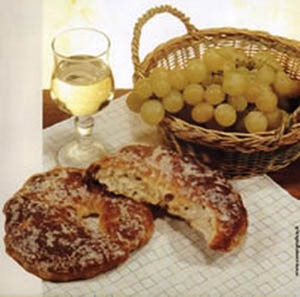 Distinte dal marchio del Consorzio di Tutela di Marino, le fragranti e originali ciambelle - impastate con farina di tipo 00, zucchero, mosto di uve rigorosamente di Marino DOC, olio extra vergine di oliva, uva passerina di Marino, lievito di birra e sale, in dosi "segretissime"... - si possono degustare gratuitamente e in gran quantità negli stand disseminati per tutto il Centro Storico fin giù a Borgo Garibaldi, fino ad esaurimento scorte!