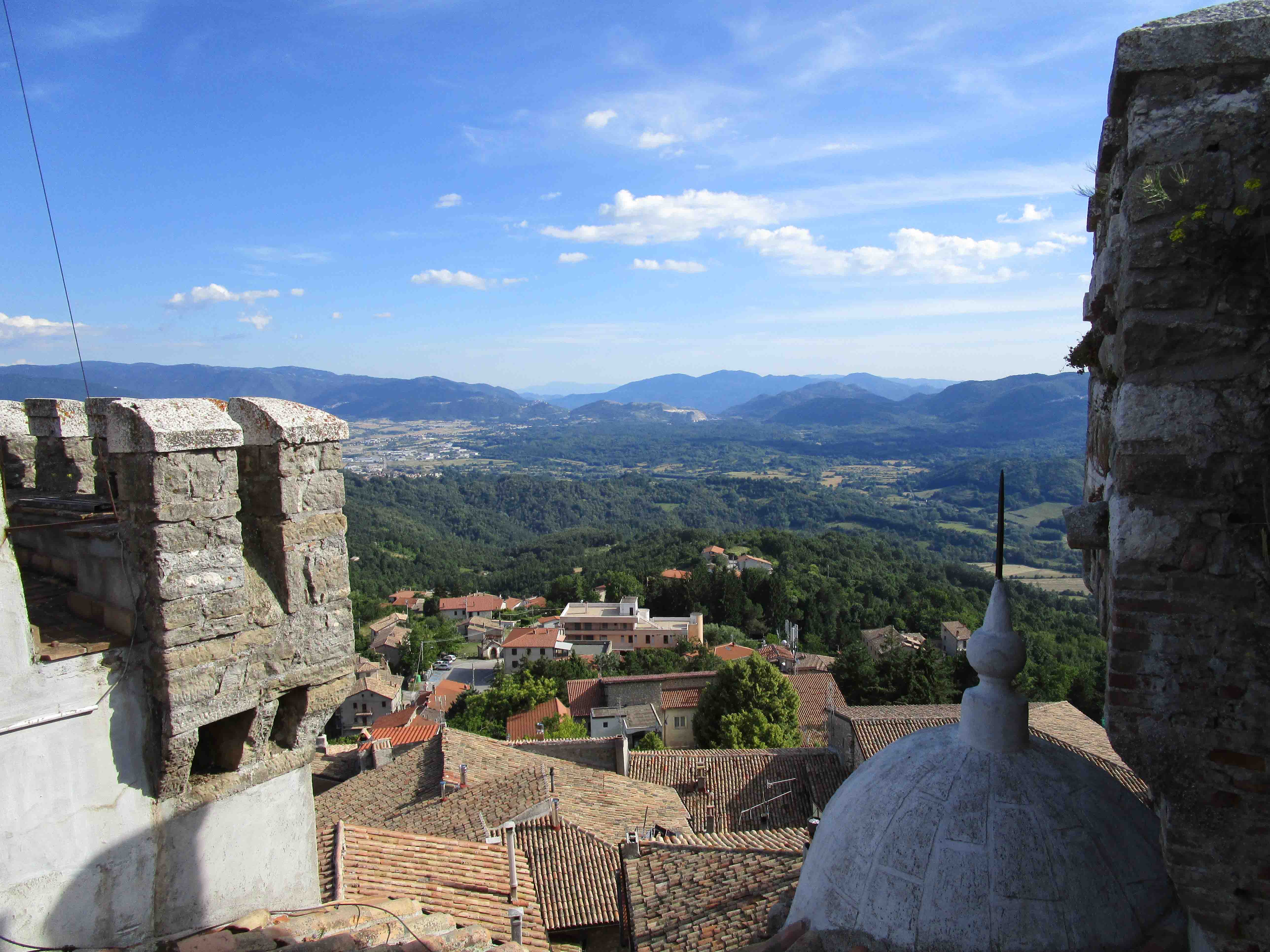 Collalto Sabino: un castello maestoso, con torri merlate, risalente al ‘500. Tutto intorno un mosaico di tetti, di case addossate una all’altra, nell’originario tessuto medievale di questa rocca, a quasi mille metri di altitudine. Si trova nella Riserva Regionale Monte Navegna e Monte Cervia, a due passi dal lago del Turano.