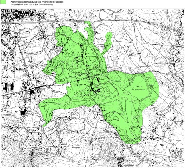 Planimetria della Riserva Naturale Antiche città di Fregellae e Fabrateria Nova e Lago San Giovanni Incarico.