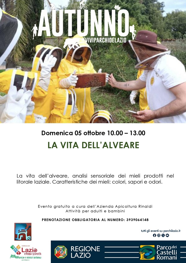 Domenica 5 ottobre dalle ore 10.00 alle 13.00, appuntamento presso la Riserva di Tor Caldara nel comune di Anzio (RM), per l’evento gratuito “La vita dell’alveare” a cura dell’Azienda Apicoltura Rinaldi.