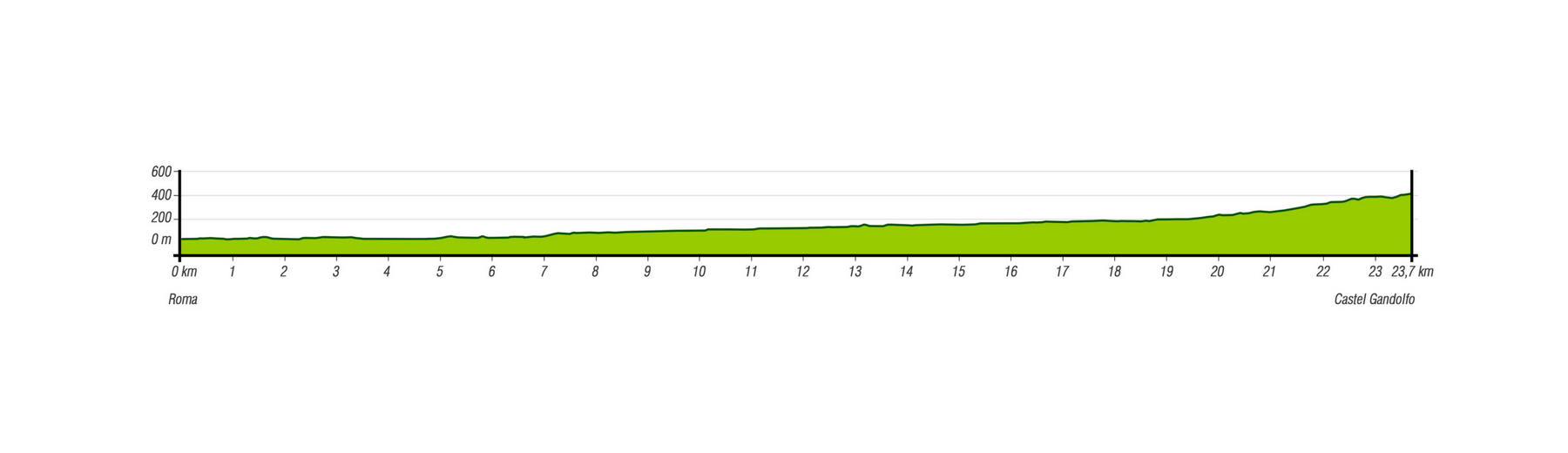 Una prima tappa per molti tratti urbana, ma sicuramente spettacolare, che traversa da Nord a Sud il Parco Regionale dell'Appia Antica, raggiungendo i comuni di Ciampino e Marino per terminare a Castel Gandolfo.