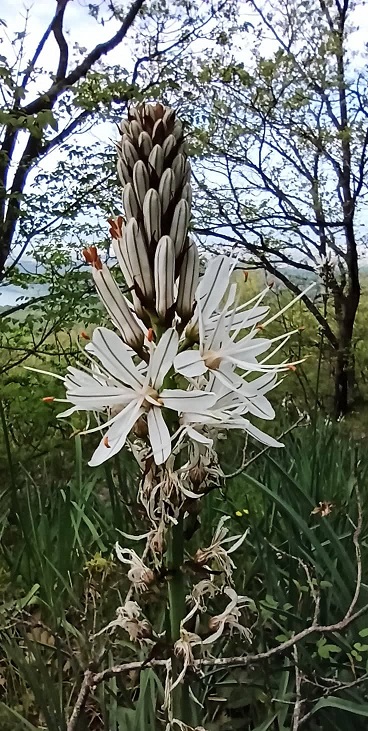 L’Asfodelo nome scientifico Asphodelus albus, è una pianta appartenente alla famiglia delle Liliaceae. Il nome deriva dal greco e significa ‘la valle di ciò che non è stato ridotto in cenere’, in riferimento ai tuberi della pianta, che sono in grado di resistere al calore del fuoco, per questo è un fiore che cresce spesso su terreni che hanno subito incendi.