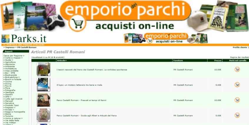 Sulla home page del sito internet istituzionale dell'Ente Parco (www.parcocastelliromani.it) c'è il collegamento diretto all'Emporio con tutti i materiali disponibili.