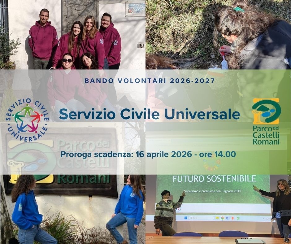 Tre sono i progetti per i quali è possibile candidarsi presso il Parco dei Castelli Romani: “Interpreti di Natura: educazione ambientale e alla sostenibilità”; “Connessioni Naturali – Comunicare per custodire”; "Cammini, Paesaggi e Monitoraggi Faunistici: Un viaggio nel mondo della natura". Sono disponibili due posti per progetto per un totale di 6.