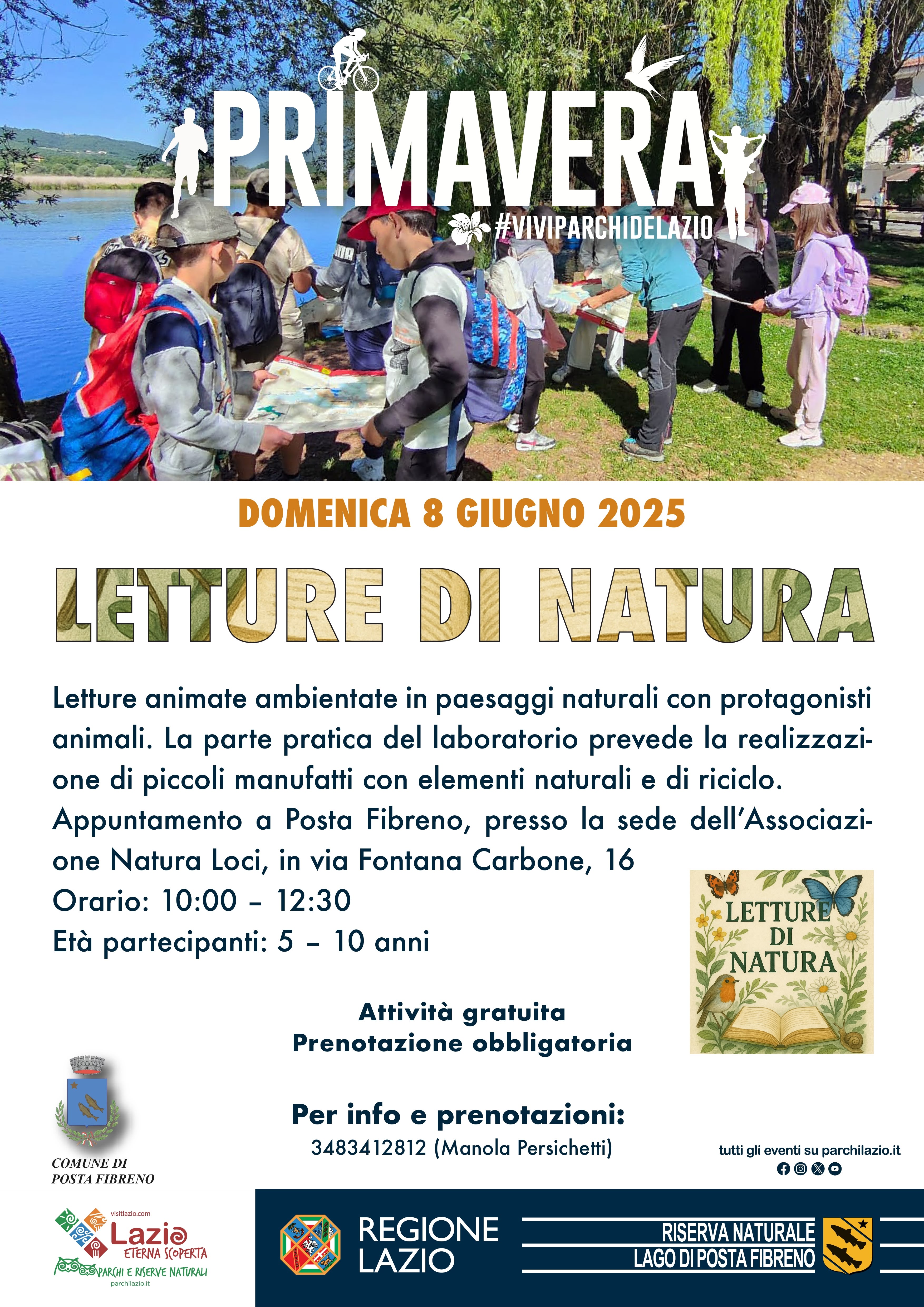 Domenica 8 giugno 2025 la Riserva Naturale lago di Posta Fibreno organizza il laboratorio didattico “Letture di Natura”.