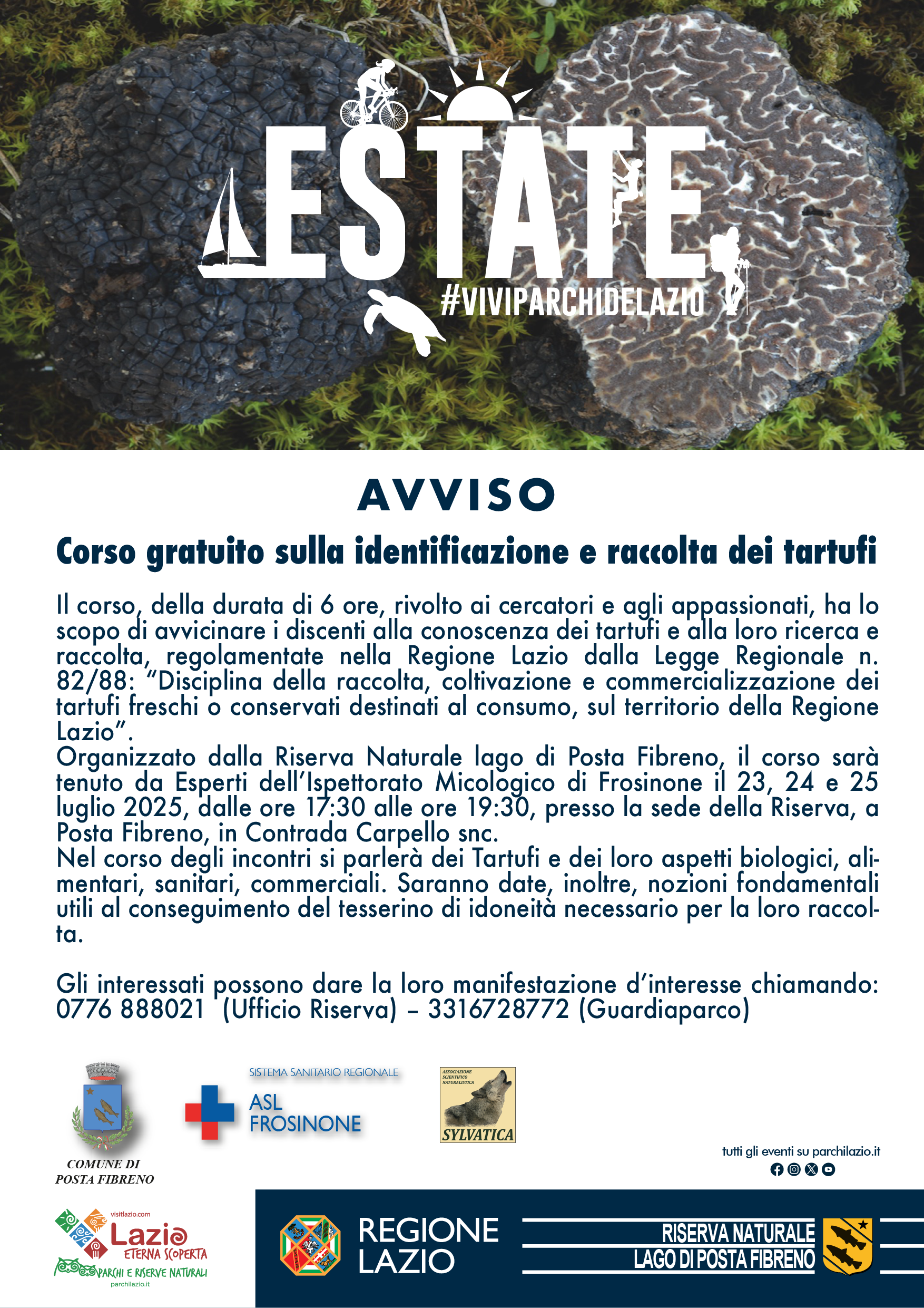 Il corso, organizzato dalla Riserva Naturale lago di Posta Fibreno, in collaborazione con esperti micologi della ASL di Frosinone, si terrà il 23, 24 e 25 luglio 2025, dalle ore 17:30 alle ore 19:30, a Posta Fibreno, presso la sede della Riserva, in Contrada Carpello snc.