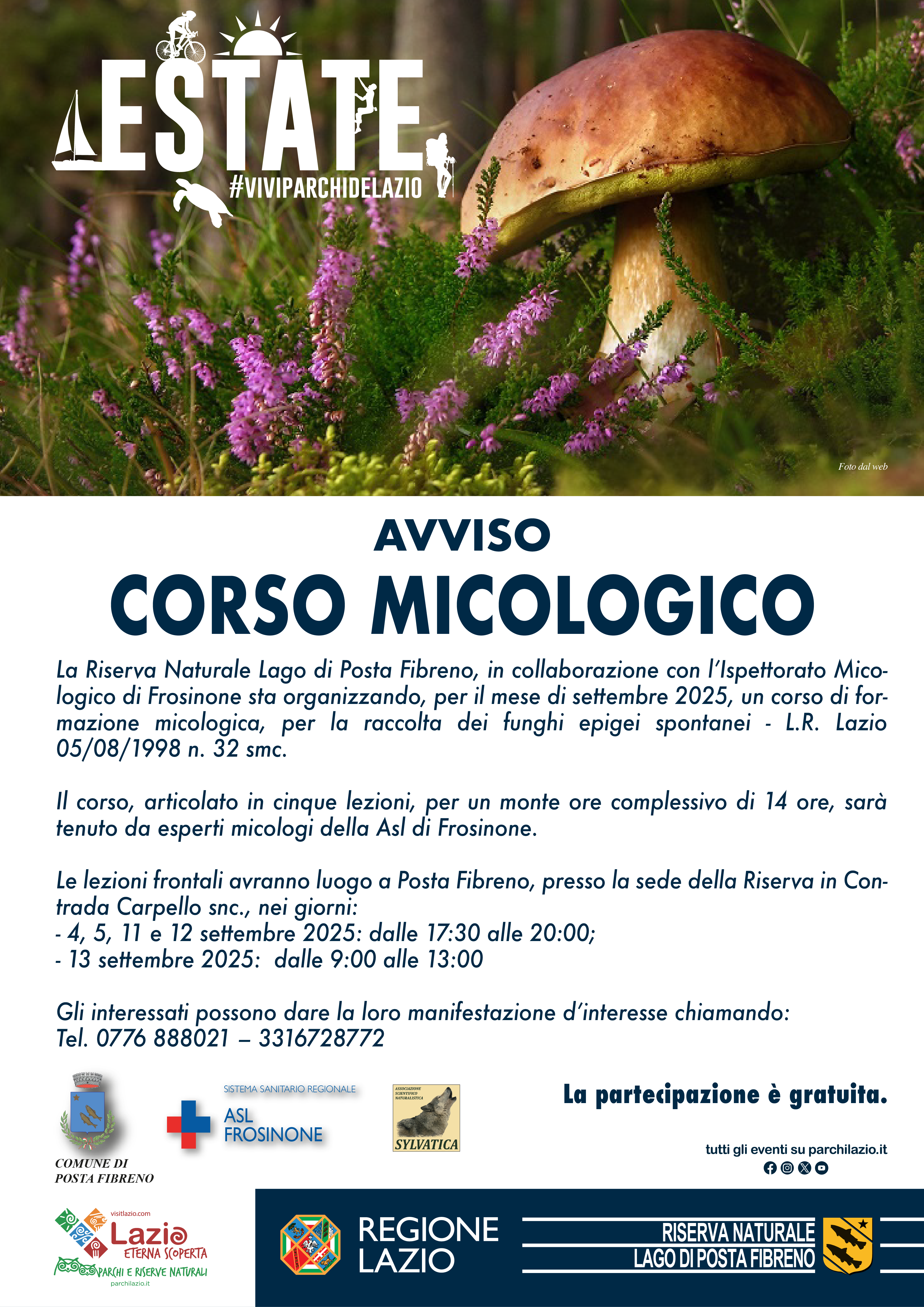 Organizzato dalla Riserva Naturale lago di Posta Fibreno, in collaborazione con l’Ispettorato Micologico di Frosinone, il corso, tenuto da esperti micologi, sarà articolato in cinque lezioni, per un monte ore complessivo di 14 ore.