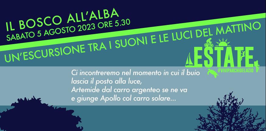 La suggestione verrà data dal sorgere del sole e dai raggi che filtrano nel fitto del bosco: ci incontreremo nel momento in cui il buio lascia il posto alla luce, Artemide dal carro argenteo lascia il posto ad Apollo col carro solare.