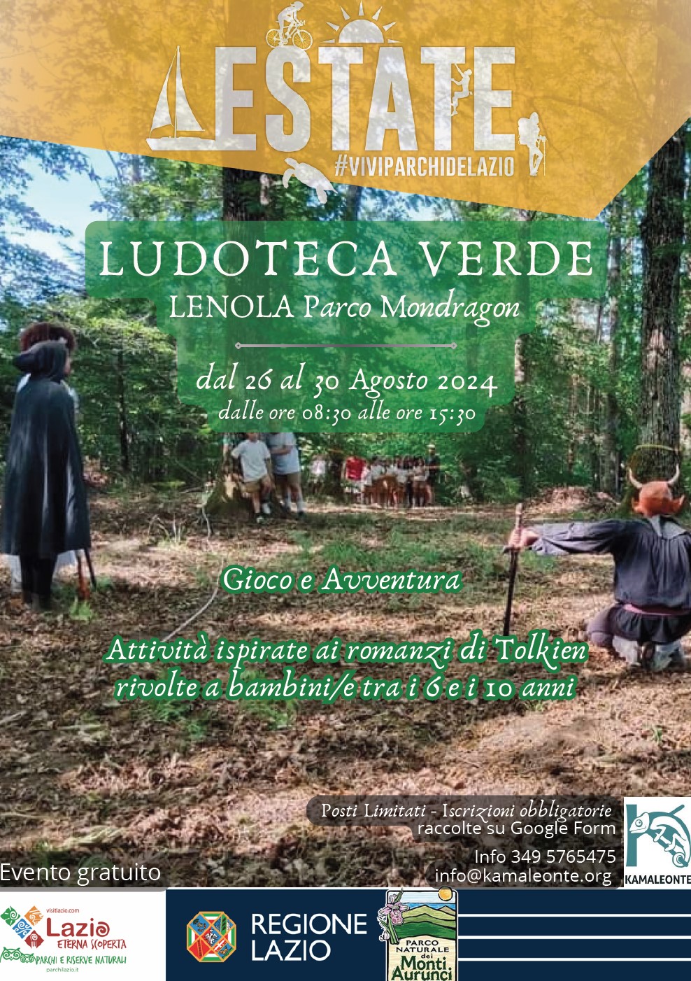 Anche quest'anno, nell'ambito del programma "Estate 2024 – Vivi i Parchi del Lazio", il Parco Naturale dei Monti Aurunci avvalendosi della collaborazione della "Kamaleonte ASD APS" organizzerà le attività della Ludoteca Verde. Questo speciale spazio di gioco, natura, sport, avventura e creatività è pensato per accogliere 30 bambini e bambine dai 6 agli 11 anni, offrendo loro un'esperienza indimenticabile immersa nella natura.