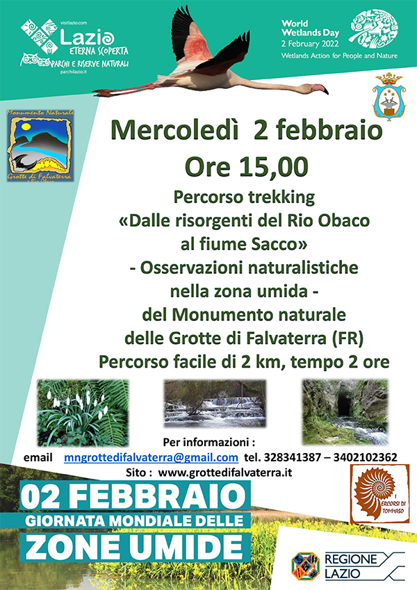 Mercoledì 2 febbraio alle ore 15 presso il Monumento Naturale Grotte di Falvaterra e Rio Obaco in occasione della giornata mondiale delle zone umide si terrà una escursione dalle sorgenti del Rio Obaco al fiume Sacco.