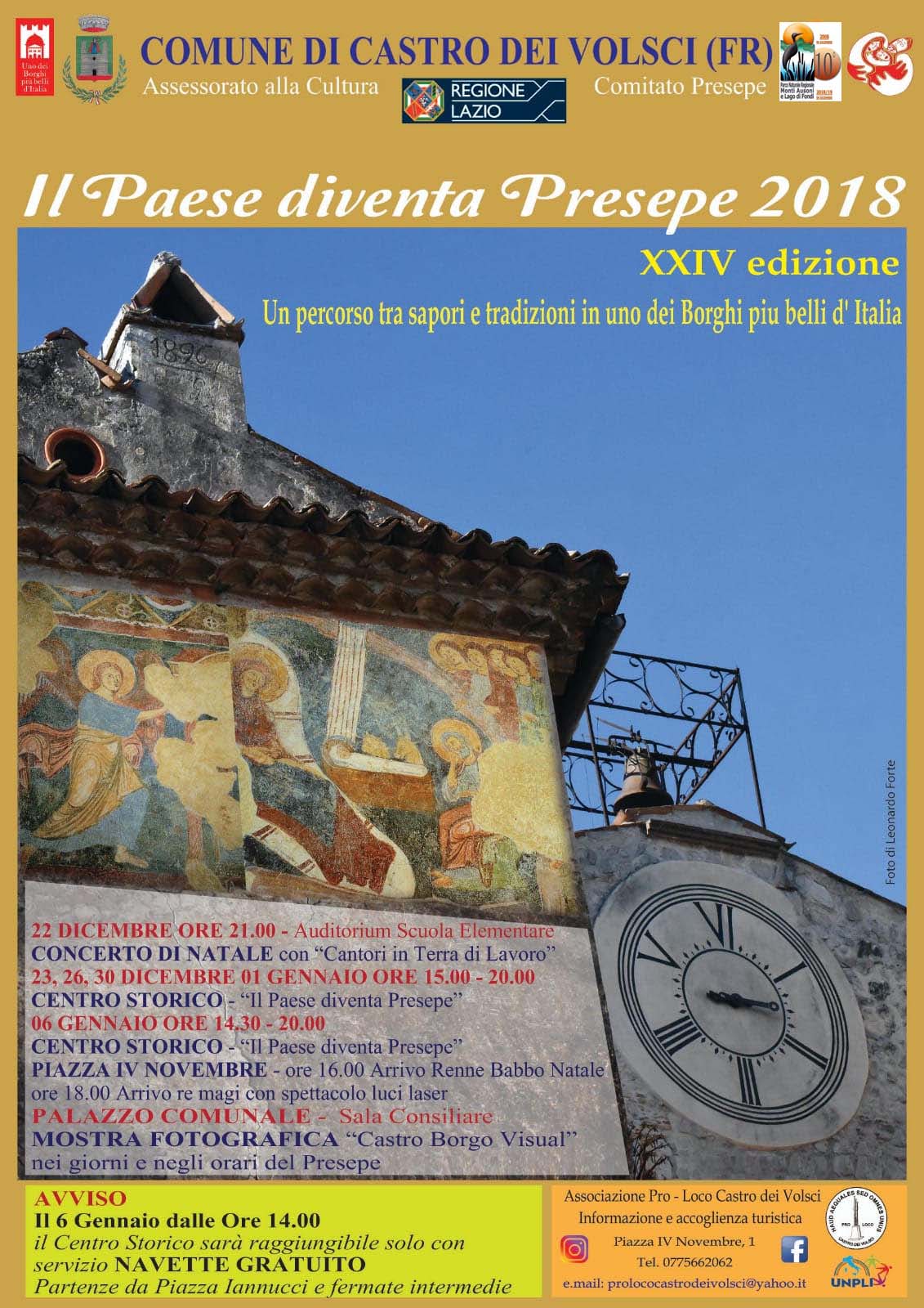 Sabato22. domenica 23, mercoledì 26 e domenica 30 Dicembre 2018 e martedì 1 e domenica 6 Gennaio 2019 a Castro dei Volsci (Fr), il paese natale di Nino Manfredi, torna l’appuntamento con “Il Paese diventa Presepe“, manifestazione di richiamo nazionale giunta ormai alla sua 24esima edizione.