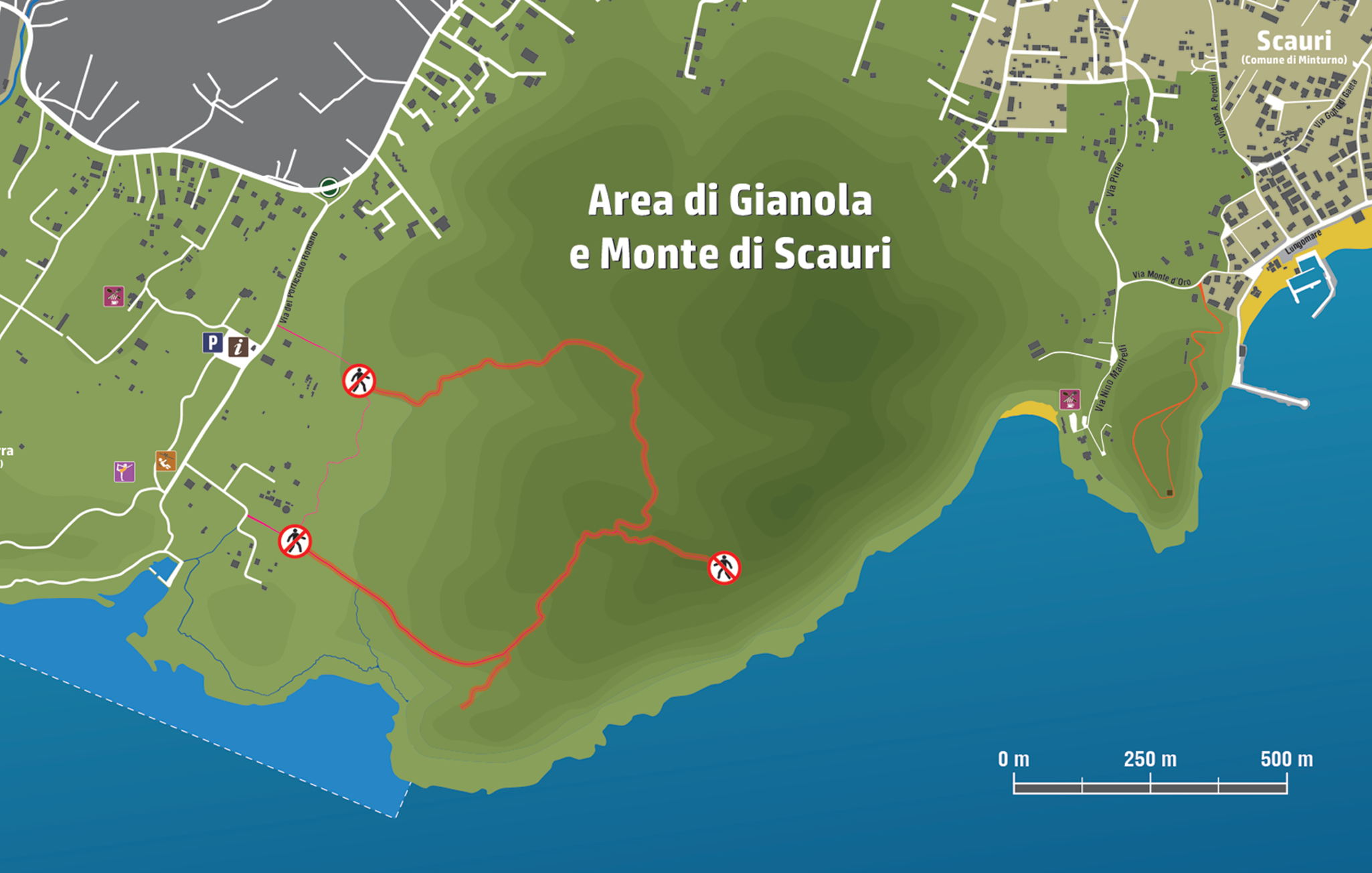 In ragione di possibili pericoli per l’incolumità delle persone dovuti allo svolgimento di operazioni di eradicazione cinghiali, il Sentiero del Crinale, nell'area naturale di Gianola e Monte di Scauri, è temporaneamente interdetto alla pubblica fruizione. Ordinanza del Direttore nr. 01 del 01/07/2016