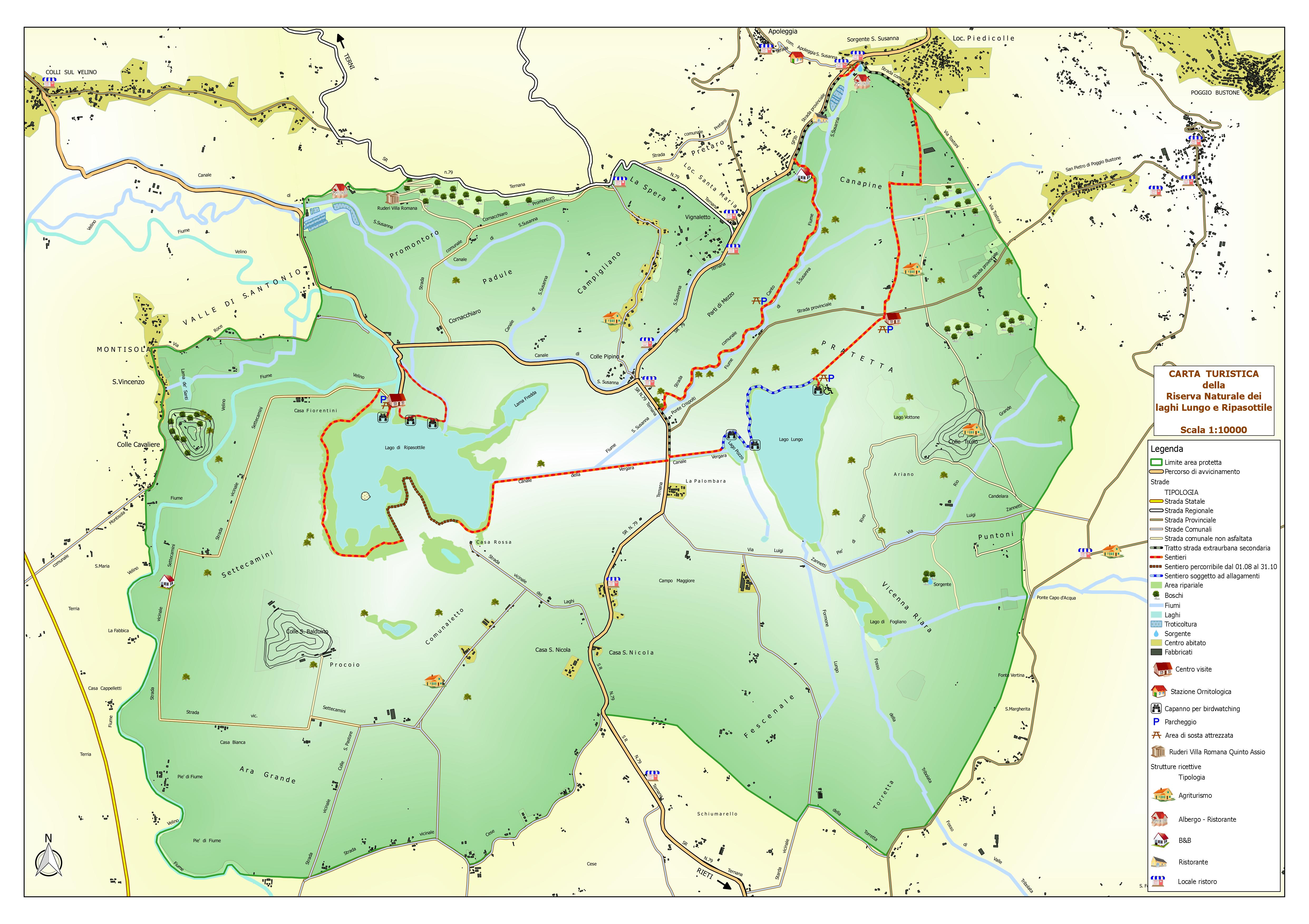 La Riserva Naturale è lieta di annunciare la pubblicazione sul sito, nella sezione cartografie dedicata all’area protetta, della “Carta Turistica della Riserva Naturale dei laghi Lungo e Ripasottile”, una valida guida per gli appassionati dell’escursionismo e dell’ambiente naturale, come quello rappresentato dal territorio della Riserva Naturale, dove la biodiversità fà da padrona. La Carta contenente indicazioni e riferimenti a carattere turistico, culturale e ambientale, è stata realizzata dal personale dipendente dell’ente di gestione dell’area protetta, che si occupa del sistema informativo territoriale. La carta turistica è stata elaborata con l'intento di offrire al visitatore un supporto cartografico di facile consultazione, attraverso la quale possa orientarsi e comprendere in modo esemplificativo il territorio interessato, con lo scopo di facilitarne la visita. Studiata ed elaborata per rappresentare in modo snello ed esaustivo su quanto si può trovare di interessante sul territorio dell’area protetta, mettendo in evidenza i tratti sentieristici esistenti, attraverso i quali è possibile visitare le zone più peculiari dell’area umida. Dal portale inoltre è possibile scaricare sia la Carta Turistica nel formato immagine .jpg, che distinti percorsi corrispondenti alle principali strade che conducono al territorio dell’area protetta, le cui tracce digitalizzate sono salvate nel formato .kml., e sono visualizzabili sia su pc con i programmi gratuiti Google Hearth o Maps Google, che su smartphone con funzioni gps.