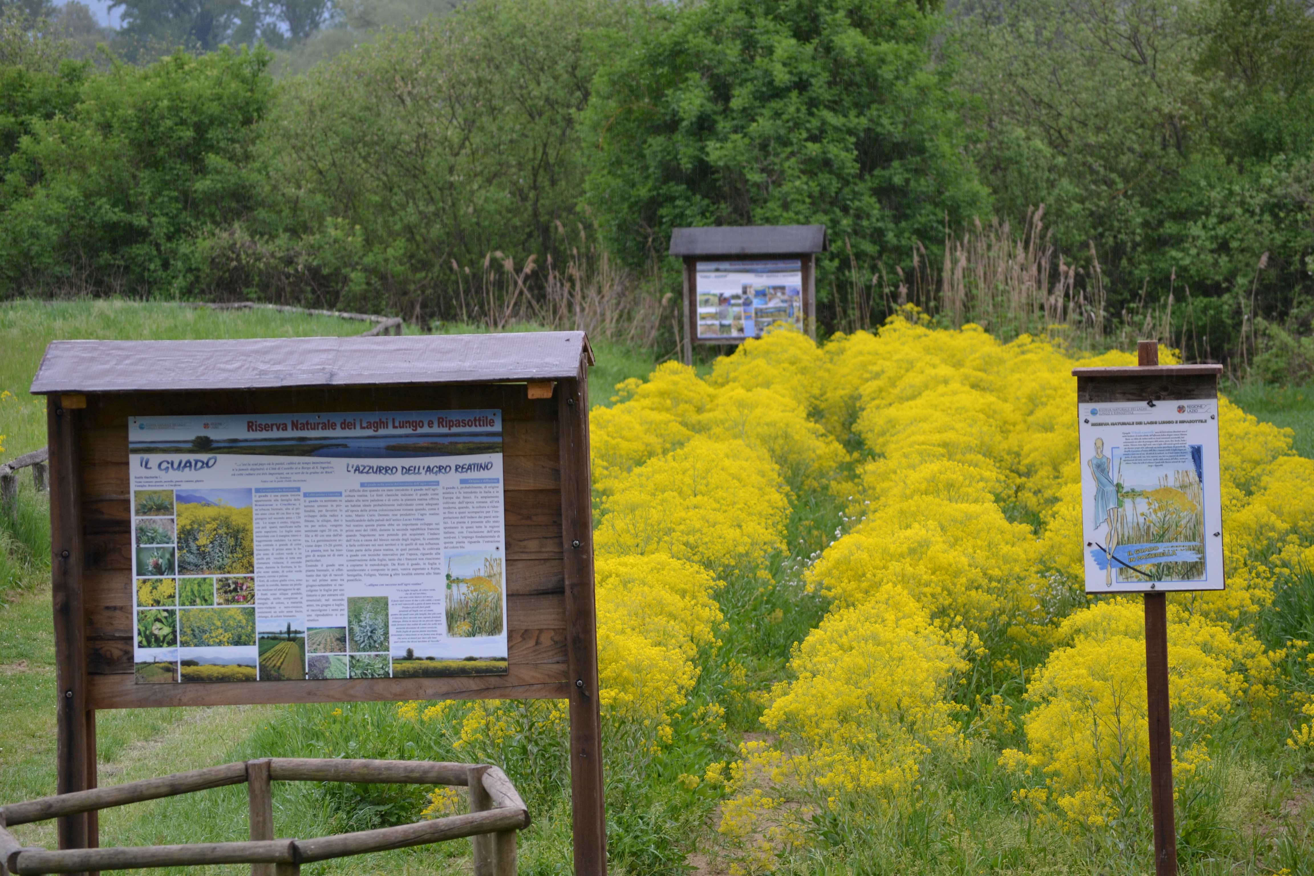 Il guado è una pianta tintorea coltivata anticamente nel reatino. La nostra Riserva dal 2007, a scopo didattico divulgativo, coltiva questa pianta nei terreni dell'Area Protetta e in collaborazione con il Prof. Alberto Lelli, organizza ogni anno dei laboratori di tintura a tino.