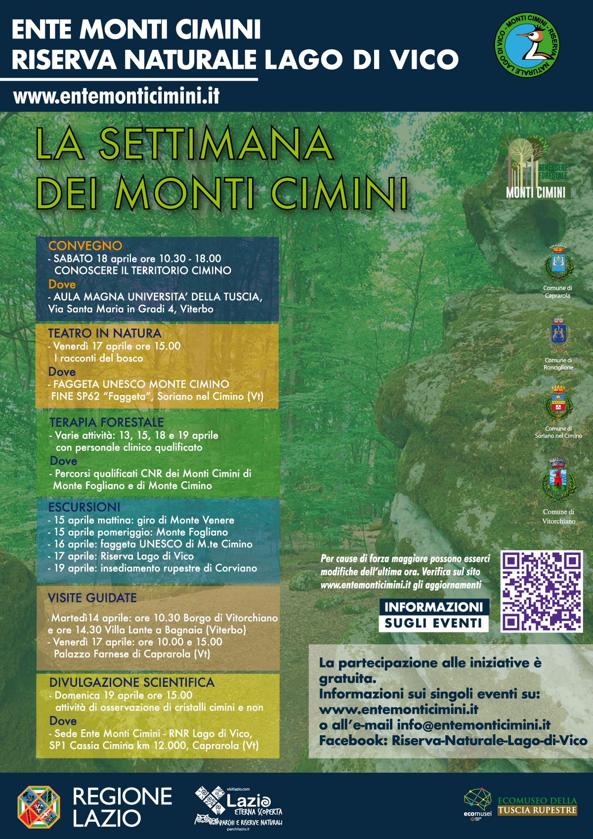 Grazie ai fondi della Direzione Regionale Programmazione economica, Fondi europei e Patrimonio naturale dal 13 al 19 aprile 2026 si terrà una la Settimana dei Monti Cimini, un contenitore di eventi dedicati al territorio, alla sua conoscenza e alla promozione delle risorse locali.