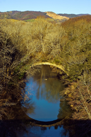 Quel che oggi appare a uno sguardo distratto come un qualunque ponte, in realtà è un luogo carico di storia e suggestioni. Passava qui il confine tra Stato pontificio e Repubblica di Siena, lungo il fiume Fiora che scende dall’Amiata. Oltre tutto, la natura selvatica dei luoghi favorisce la presenza di numerose specie animali – il lupo, per citarne solo uno - certificata da alcuni siti di Natura 2000 (la rete di protezione della biodiversità dell’Unione europea). Affacciandosi dal ponte è possibile osservare bene le antichissime rocce metamorfiche su cui scorrono le acque del fiume, e pure poco più a monte l’arcata del vecchio ponte d’età rinascimentale ormai diruto. Nei dintorni, sono numerose le cavità carsiche e le necropoli d’età arcaica ma frequentate fino al Medioevo e oltre.