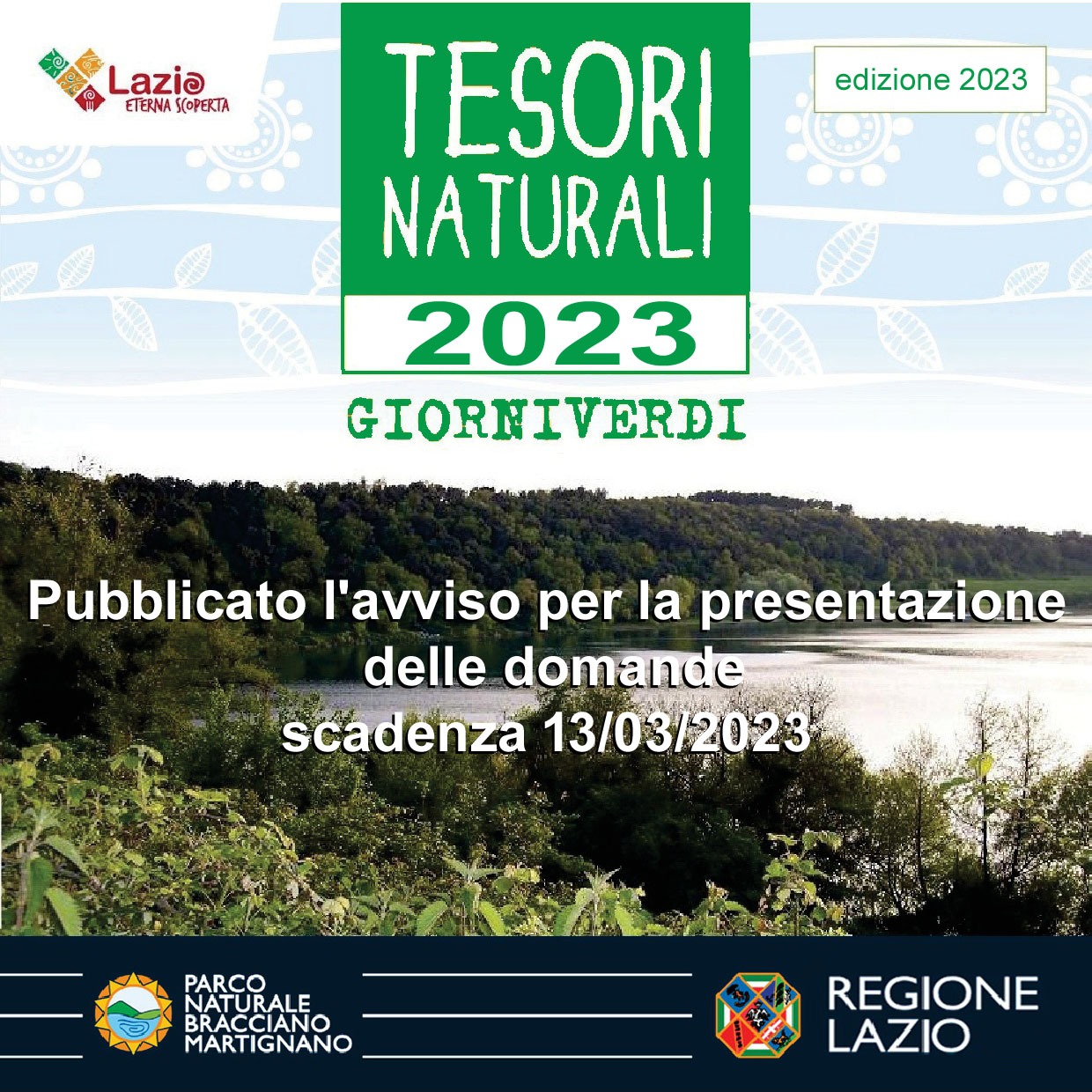 L’ente pubblico di gestione del Parco Naturale Regionale Bracciano Martignano si propone, anche per il 2023, come riferimento del comprensorio lacustre per raccogliere proposte, da parte dei diversi operatori locali, per la realizzazione di attività finalizzate alla conoscenza e alla promozione del territorio protetto. Per questo motivo, in considerazione delle edizioni realizzate negli anni 2018 e 2019 e facendo riferimento alle esperienze emergenziali degli anni 2020, 2021 e 2022 l’Ente Parco propone il Programma “Tesori Naturali 2023”: un calendario di attività, preferibilmente una nei giorni festivi e una nei prefestivi, fermo restando le attività seriali proposte periodicamente ed in concomitanza delle giornate mondiali e/o nazionali.