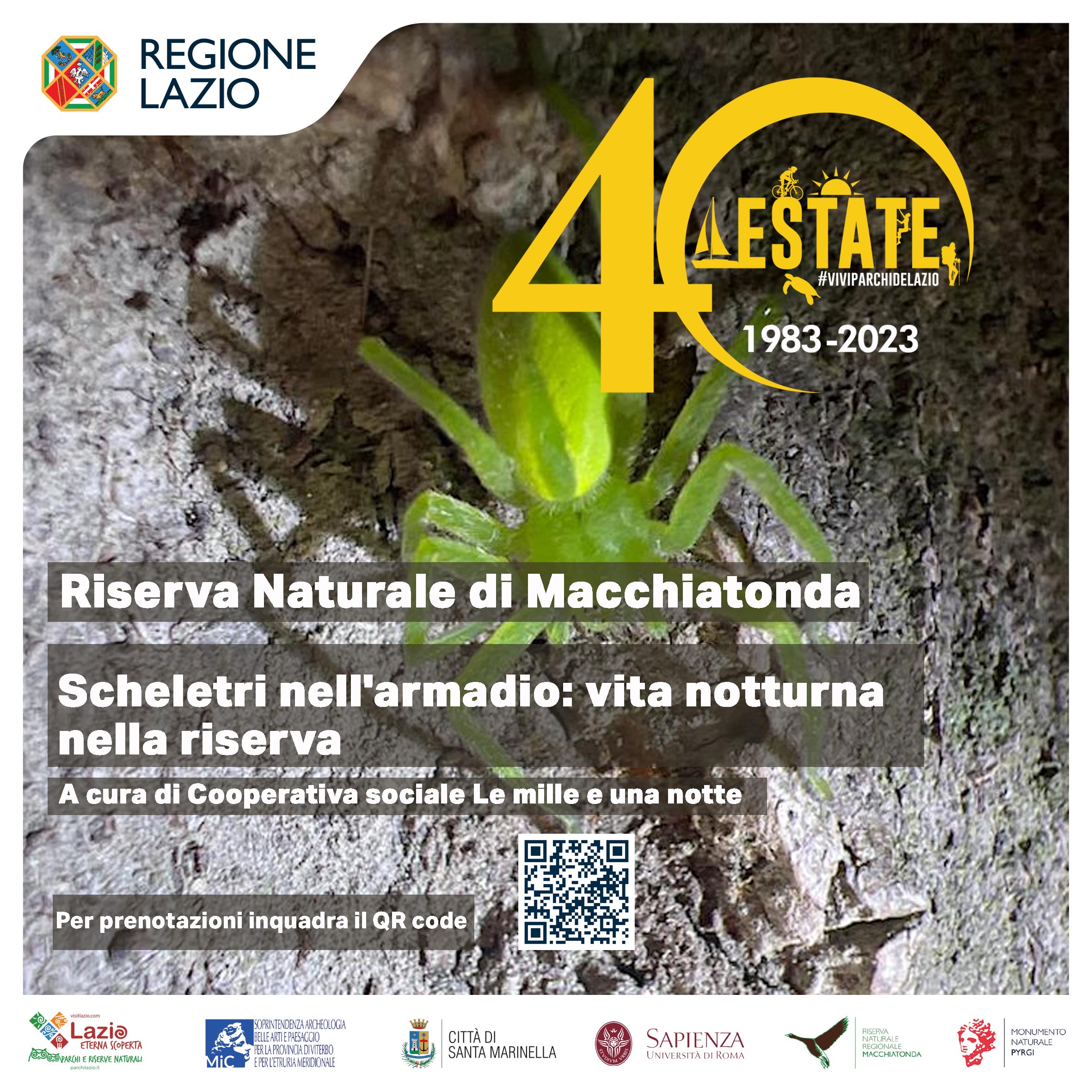 • "SCHELETRI NELL'ARMADIO: VITA NOTTURNA NELLA RISERVA" a cura di Cooperativa sociale Le mille e una notte  Un percorso alla scoperta della presenza di piccoli e grandi animali che della notte fanno il momento di loro massima attività giornaliera. Se non avete paura del buio e dei piccoli e grandi artropodi allora questa è un’occasione unica per farvi sorprendere dalla natura…. selvaggia di questa riserva costiera