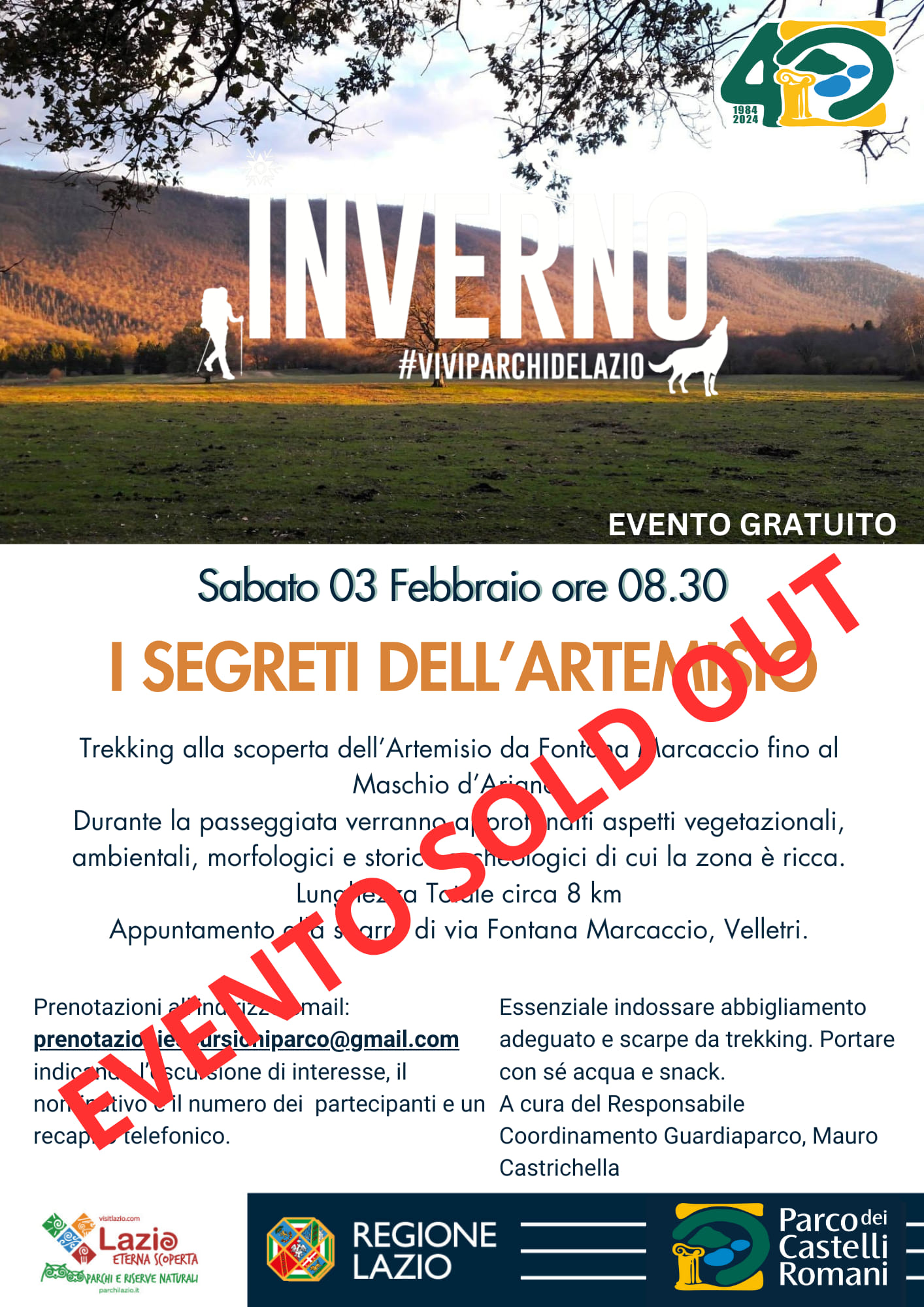 Sabato 3 febbraio alle ore 8:30, si svolgerà un trekking alla scoperta dell'Artemisio. Partendo da Fontana Marcaccio, luogo dell'appuntamento, si arriverà percorrendo 8 Km, al Maschio d'Ariano.