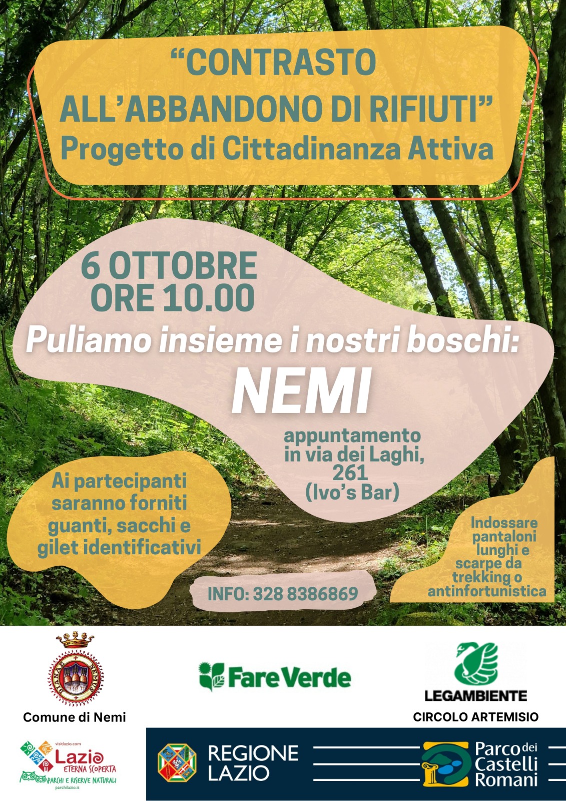 Il progetto di contrasto all'abbandono dei rifiuti nelle aree verdi dell’Area protetta sostenuto dall'Ente Parco passa alla fase operativa, con un primo intervento nel comune di Nemi (RM).