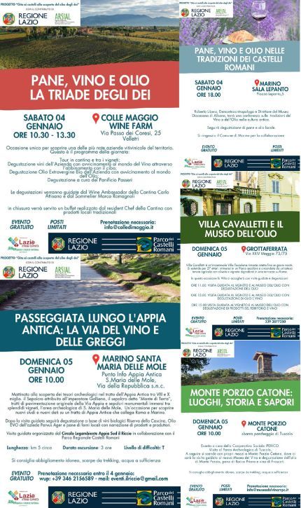 Nel prossimo fine settimana si svolgeranno, gli eventi finanziati da ARSIAL, inerenti l’avviso pubblico per iniziative di promozione del sistema agroalimentare del Lazio, per il periodo dal 15 dicembre 2024 al 6 gennaio 2025.