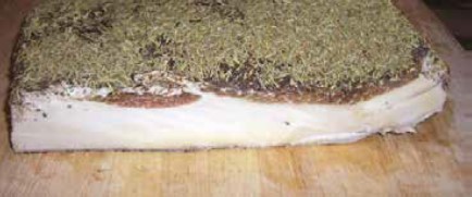 Lardo stagionato per 60 gg sottoposto a salatura a secco, aromatizzato con rosmarino, pepe e ginepro. La materia prima deriva dal lardo di schiena del suino. La forma è parallelepipeda ed il colore è bianco, erborinato all'esterno. Il peso, dopo la stagionatura, è di 2-3 kg circa. Per la preparazione del lardo di San Nicola la materia prima deriva da carcasse di suino, giunte già eviscerate e dal peso morto di circa 140 kg. Le mezzane vengono immagazzinate in cella frigo per 72 ore, prima della lavorazione, a temperatura di circa a 4°C. Successivamente viene effettuato il sezionamento dei tagli e la selezione del lardo di schiena. Si procede con la salatura a secco con solo sale marino, per 10 giorni, in cassoni di acciaio ed il condimento con rosmarino, pepe e ginepro. Non sono previsti additivi alimentari.