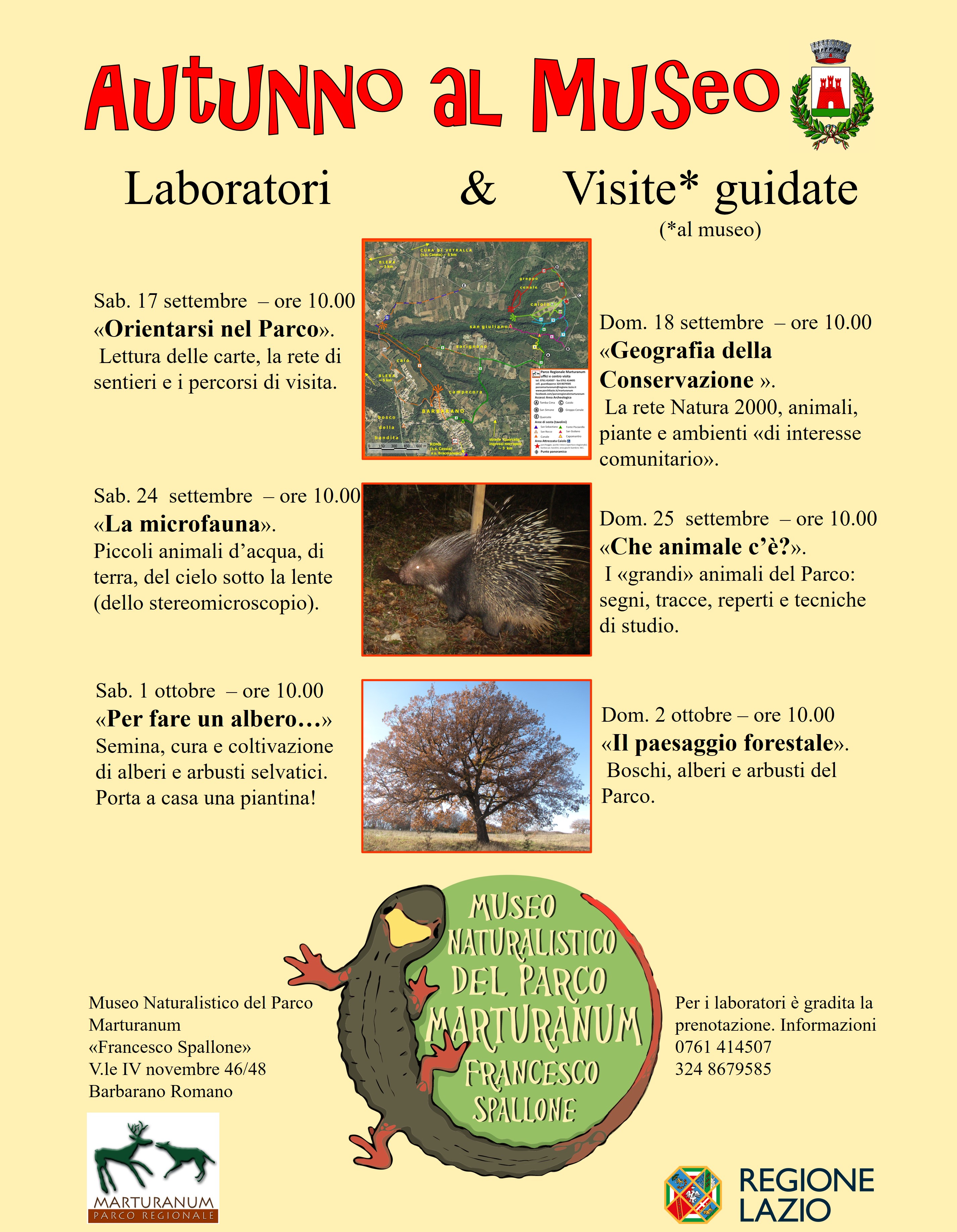 Il Museo Naturalistico del Parco Marturanum "Francesco Spallone" si anima nei prossimi fine settimana di inizio autunno,con laboratori e visite a tema.
