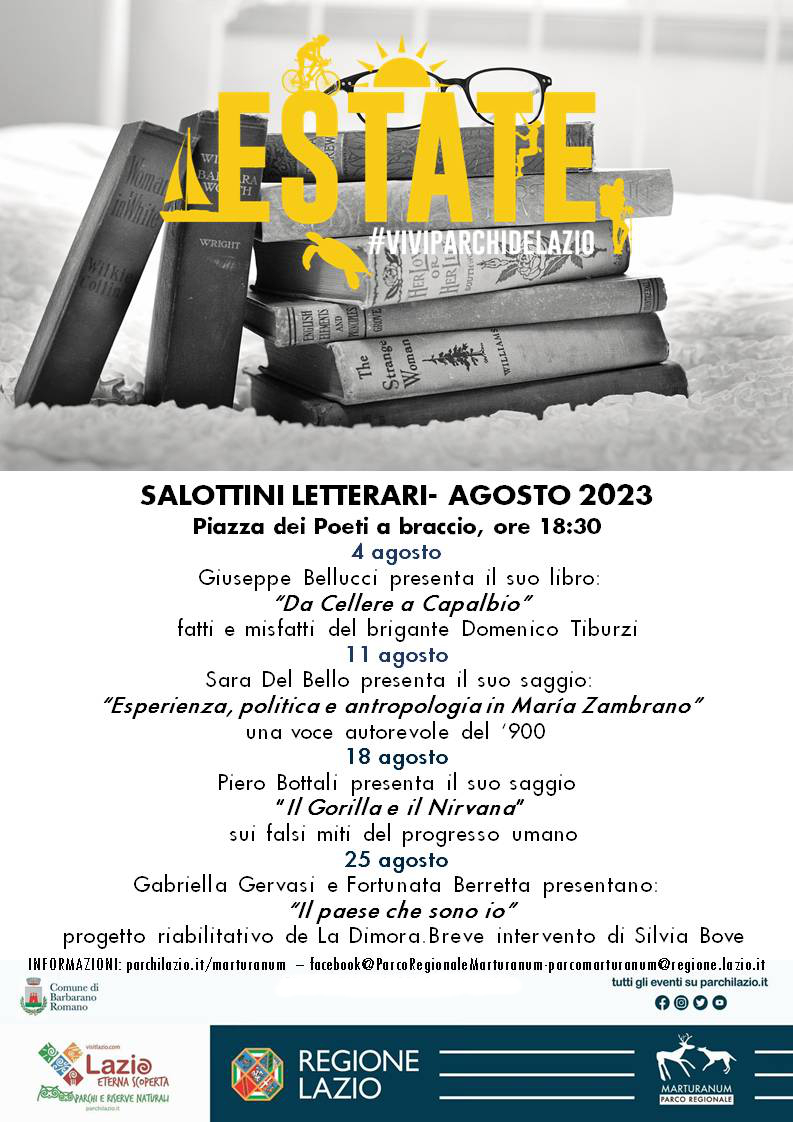 Gli incontri, a partecipazione libera, si terranno nelle date indicate, alle ore 18e30, in piazza dei Poeti a braccio, a Barbarano Romano.