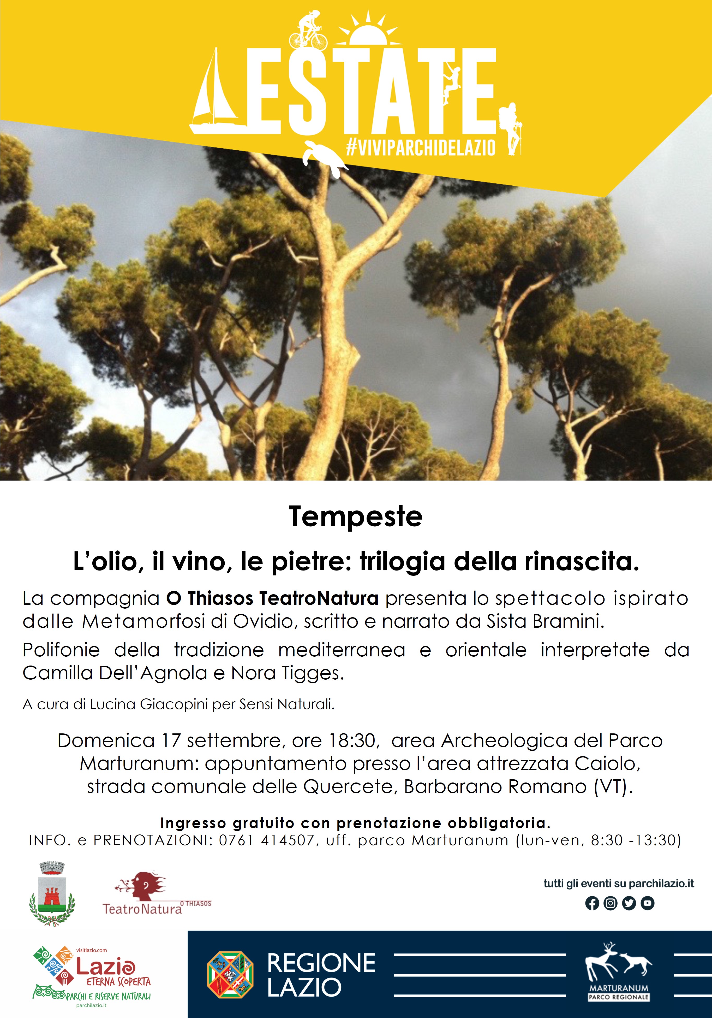 Del secondo tipo è Tempeste, lo spettacolo ispirato dalle Metamorfosi di Ovidio, che domenica 17 settembre verrà "calato" nella necropoli etrusca di San Giuliano.