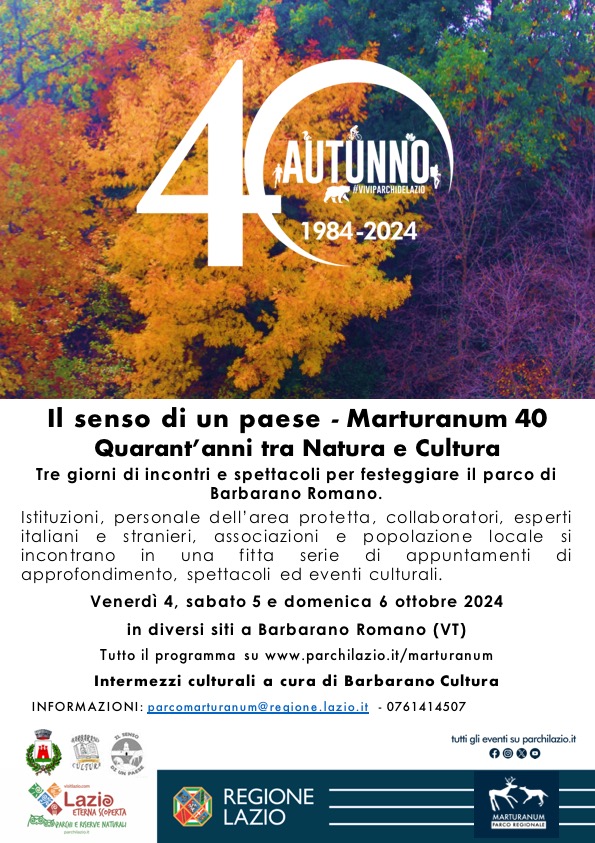 Il Parco Regionale Marturanum è stato istituito nel 1984: pallottoliere alla mano, quest'anno compie 40 anni! I diversi appuntamenti nelle passate stagioni hanno ricordato l'importante traguardo con un chiaro richiamo nelle locandine di presentazione. E' arrivato ora il momento di parlarne più diffusamente....
