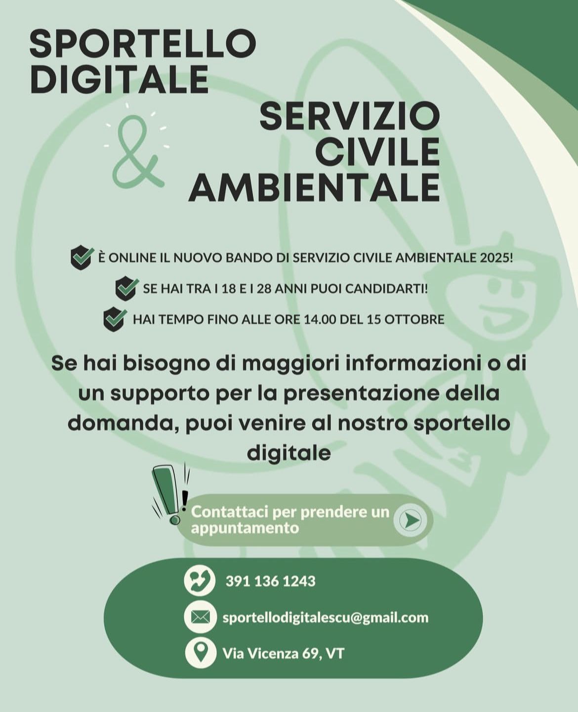 Tutte le informazioni necessarie sono disponibili sul sito del Dipartimento delle Politiche Giovanili e Servizio Civile Universale o su quello dell'ARCI - Servizio Civile di Viterbo, che. oltre a gestire il progetto, offre anche un servizio di supporto per la compilazione della domanda.