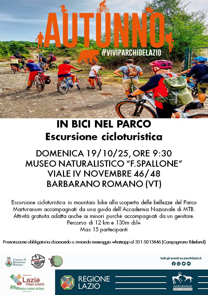 Appuntamento domenica 19 ottobre, alle 9.30 presso il Museo Naturalistico del Parco Marturanum, Vle IV Novembre 46/48 a Barbarano Romano (VT).