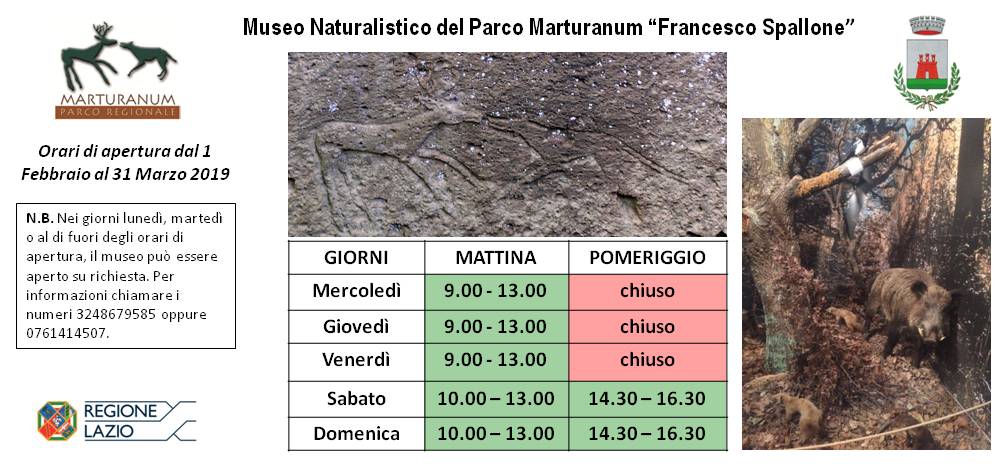 Orari di apertura del Museo Naturalistico "Francesco Spallone" - Parco Regionale Marturanum.