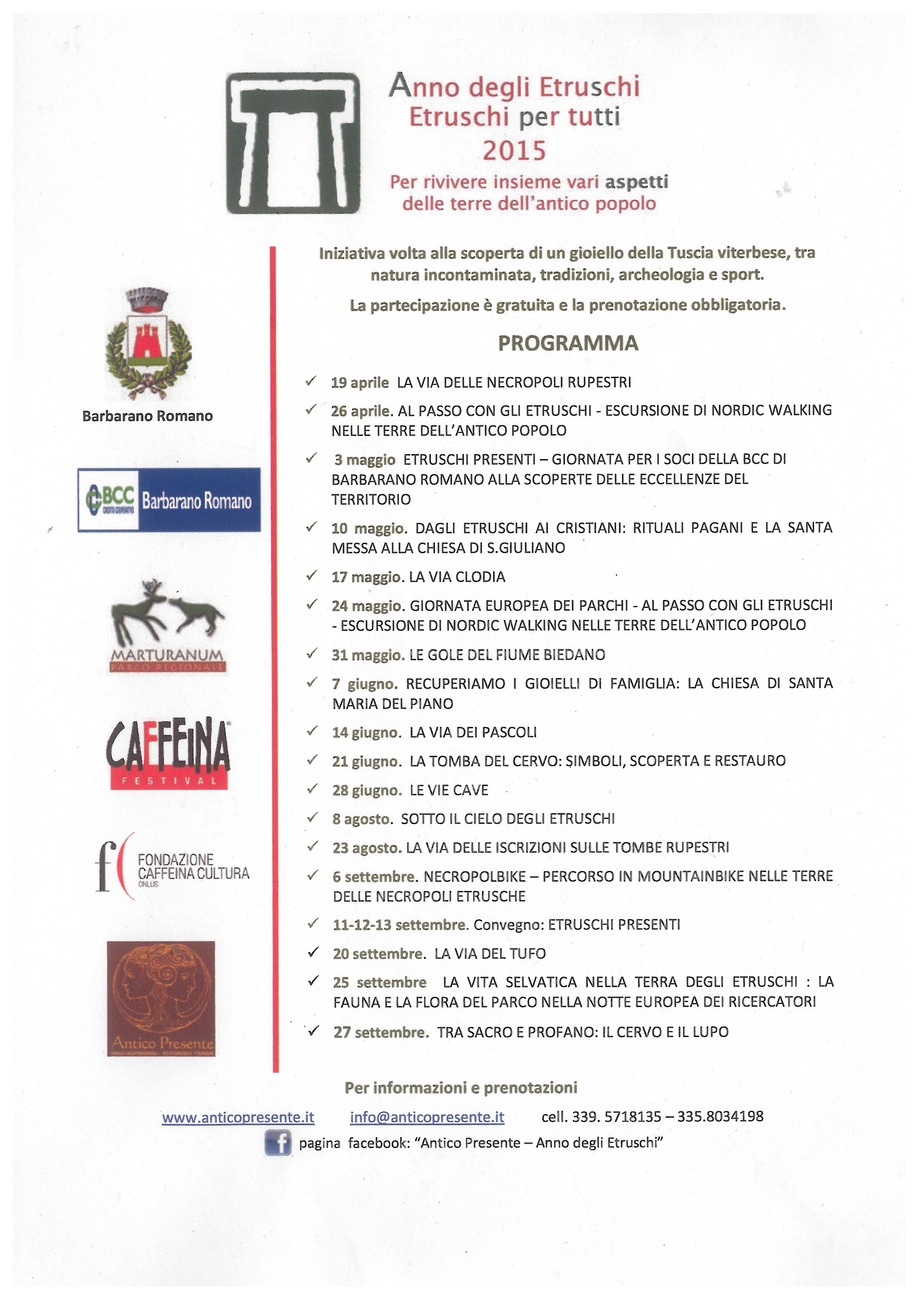 Qui sotto trovate la locandina con l'elenco di tutti gli appuntamenti in programma ed i riferimenti e numeri telefonici(www.anticopresente.it-info@anticopresente.it339/5718135-335/8034198) cui rivolgersi per informazioni e prenotazioni.