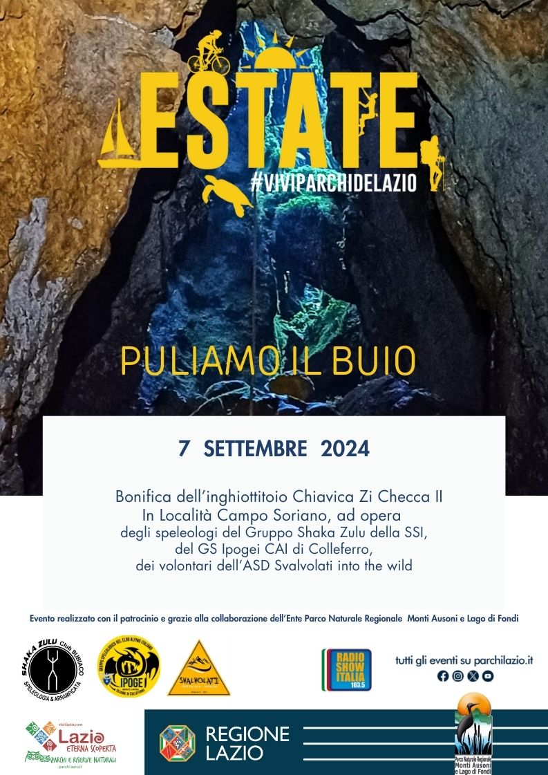 bonifica a cura degli speleologi del gruppo ShakaZulu della SSI del GS Ipogei CAI di Colleferro e dei volontari dell'Associazione Salvolati Into The Wild di Terracina.