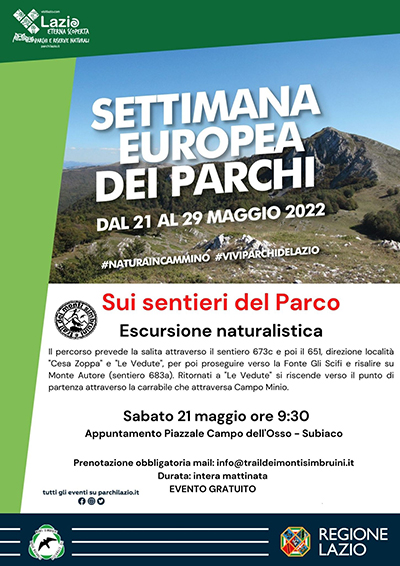 Partecipazione gratuita, prenotazione obbligatoria: info@traildeimontisimbruini.it
