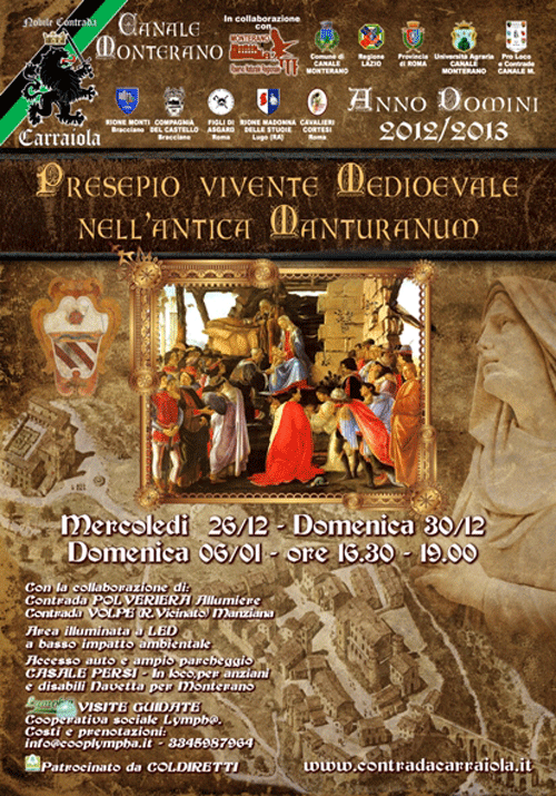 Mercoledì 26, domenica 30 dicembre e domenica 6 gennaio si svolgerà a Monterano il presepe vivente. Durante l'evento, organizzato dalla Contrada Carraiola, sarà allestito un punto di informazioni-raccolta contributi da destinare al progetto a favore delle vedove e degli orfani dei ranger dei Parchi Nazionali Virunga e Kahuzi Biega nella Repubblica Democratica del Congo.