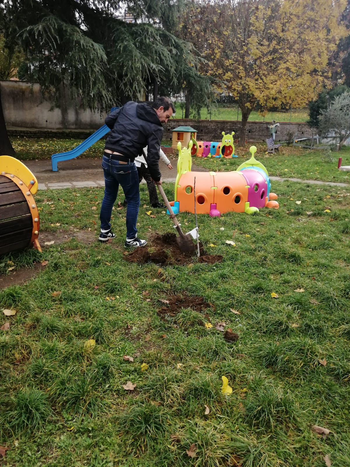 Qui sono stati messi a dimora 3 ciliegi (Prunus avium), albero simbolo della città che richiama a eventi storici e legati alla tradizione e 1 cerro (Quercus cerris), 1 albero di Giuda (Cercis siliquastrum) sarà posizionato in un’area verde all’interno del paese e 1 noce (Juglans regia) nel giardino della scuola dell’Infanzia.