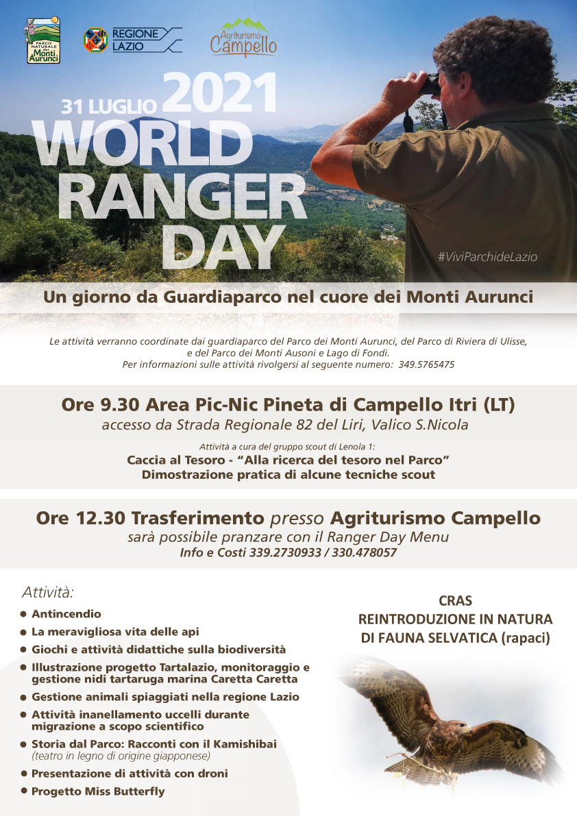 Torna il tradizionale appuntamento estivo con i Guardiparco nei Monti Aurunci. Sabato 31 luglio, in occasione del World Ranger Day sarà possibile trascorrere una giornata a contatto con la natura nel cuore del Parco Naturale dei Monti Aurunci. Le attività sono rivolte in particolare a famiglie e bambini.
