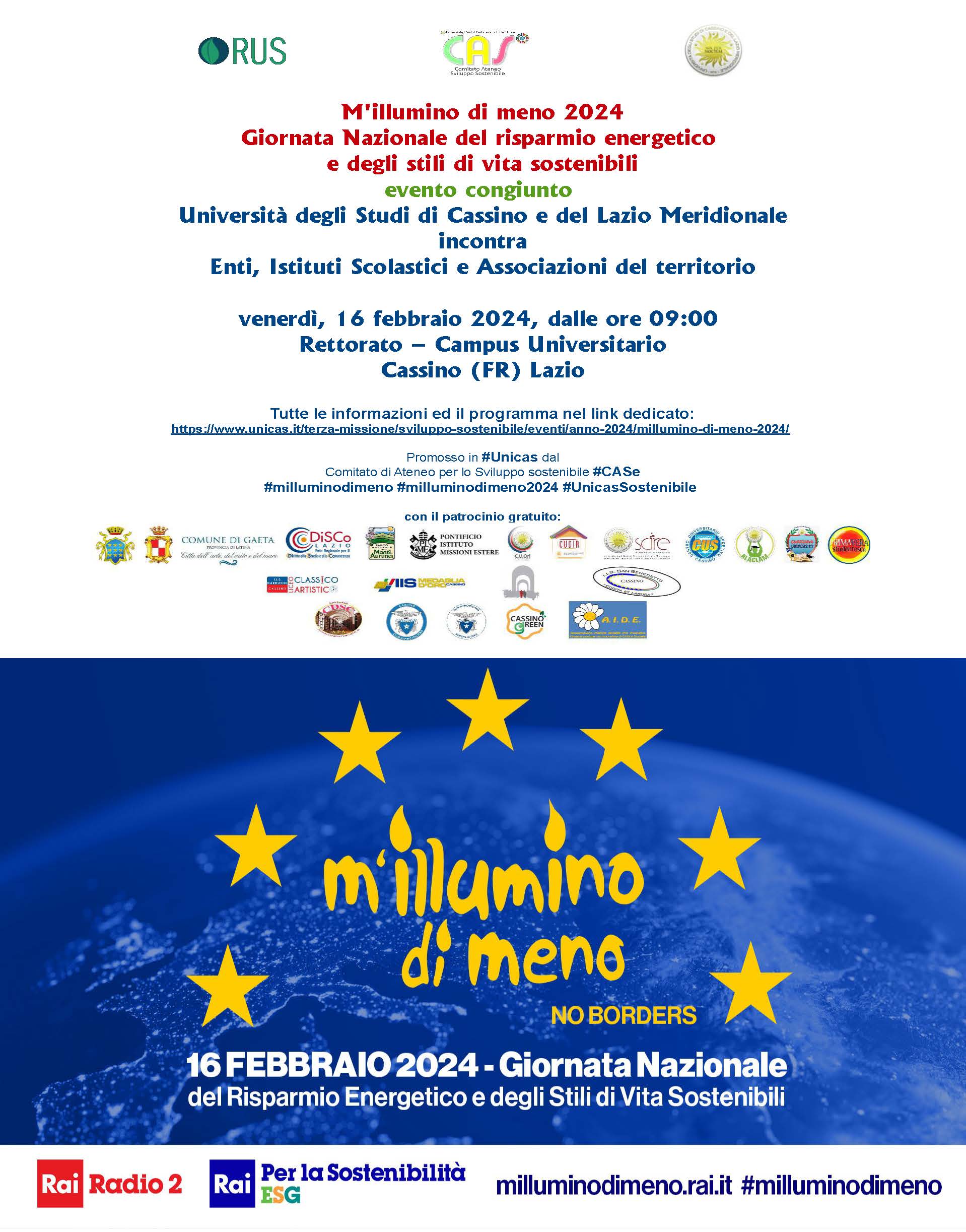 📢 Il Comitato di Ateneo per lo Sviluppo Sostenibile (CASe) dell'Università degli Studi di Cassino e del Lazio Meridionale si unisce a M'illumino di meno 2024 con un evento straordinario!