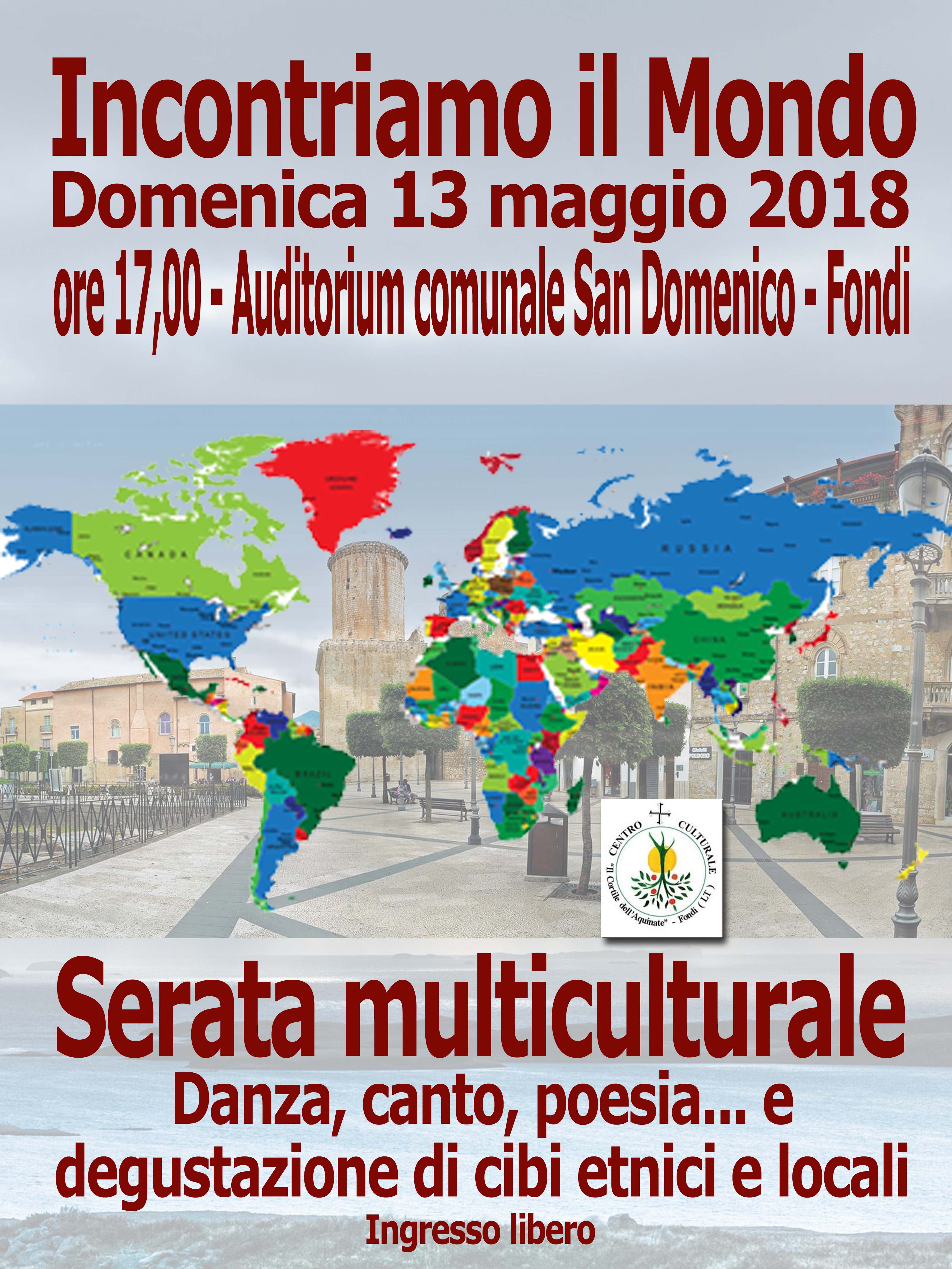 Il "Cortile dell'Aquinate" di Fondi organizza la serata multiculturale "Incontriamo il Mondo", con il patrocinio dell'Ente Parco Regionale Natuale Monti Ausoni e Lago di Fondi.